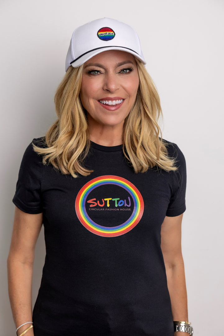 Sutton Pride Ft Round Rainbow Logo Black Womens T-Shirt