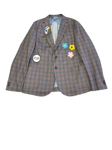 The NBJ “Rising Above” is a statement in resilience and reinvention. Crafted from repurposed luxury fabric and reimagined through Sutton’s circular design lens, this tailored plaid blazer blends classic structure with fearless individuality.